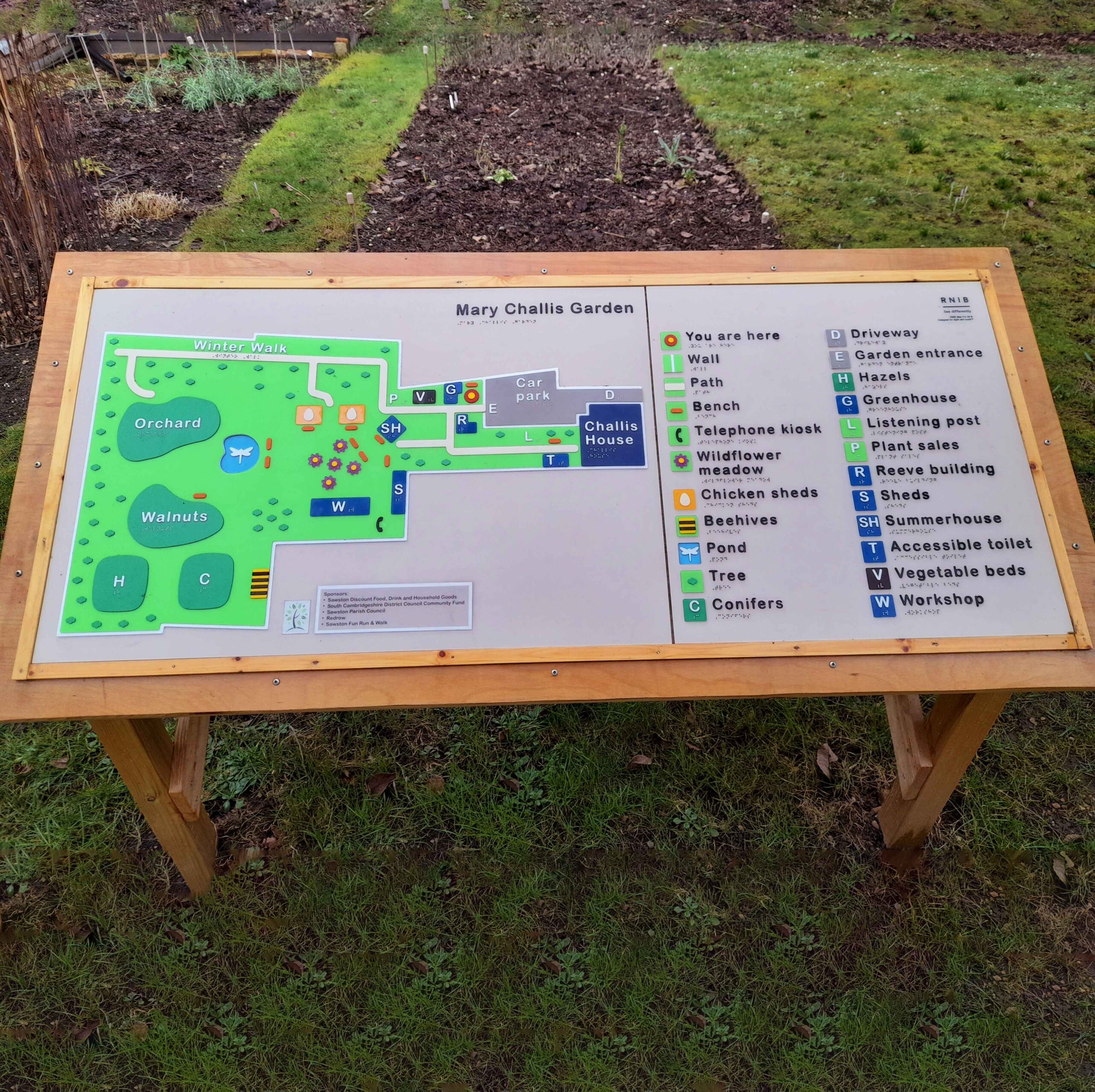 Garden Map – We have installed a Garden Map near the entrance which displays the main features of the garden and includes visual contrasts, textures, raised large print and braille lettering, as well as tactile and visual symbols.