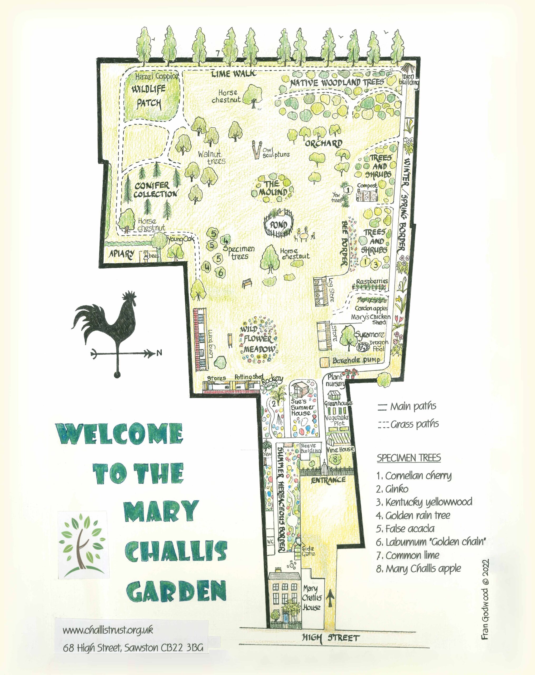 Please visit our beautiful garden! The garden, tended by volunteers, is a peaceful haven with beautiful mature trees, winding secret paths, and a pond with viewing platform – as well as plenty of benches, and a summerhouse to take shelter in! Refreshments are available from a number of Cafes and Bakers located on Sawston High.